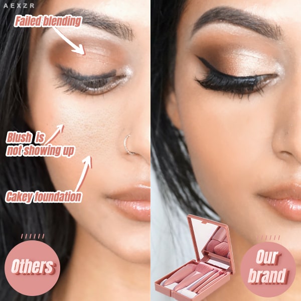 Säg nej till skrymmande kosmetiska verktyg och ge dig själv den eftertraktade blandade finishen när som helst med detta resesminkborstset!