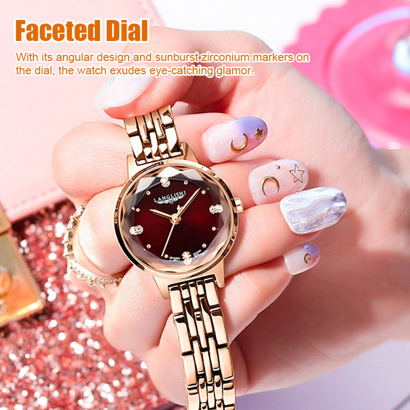 - Unik Fasetterad Urtavla: Med en kantad design och solmönstrade zirkoniummarkörer på urtavlan, utstrålar klockan en bländande charm som fångar ögat.
