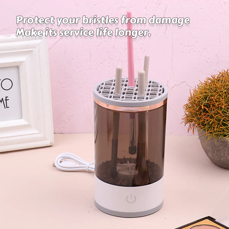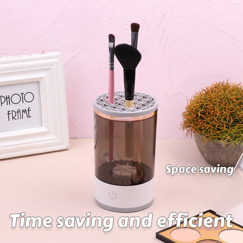 Mer än bara en sminkborstrengörare; det är ett multitasking-underverk. Den rengör inte bara dina borstar med precision, utan fungerar också som ett torkställ, vilket gör att du utnyttjar både utrymme och tid effektivt.