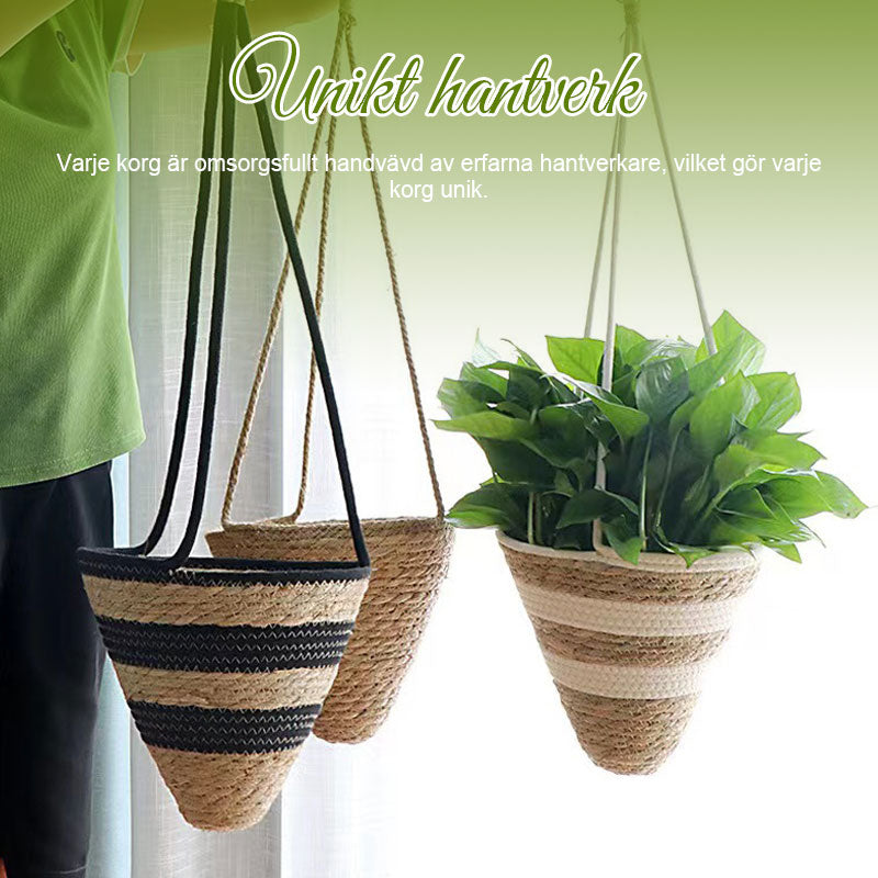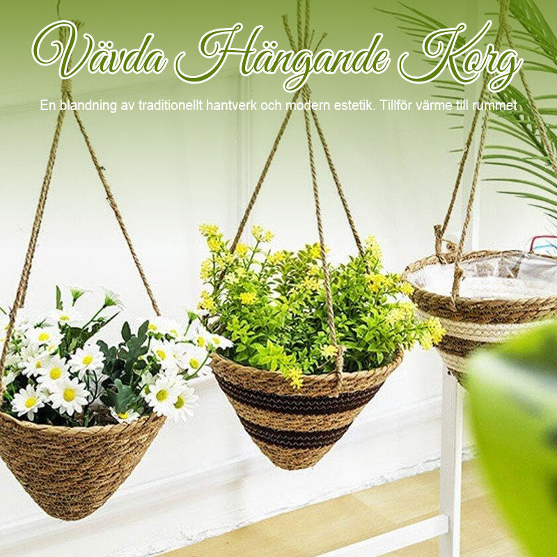 Upplev en blandning av traditionell hantverksskicklighet och modern estetik med våra vävda hängande korgar.