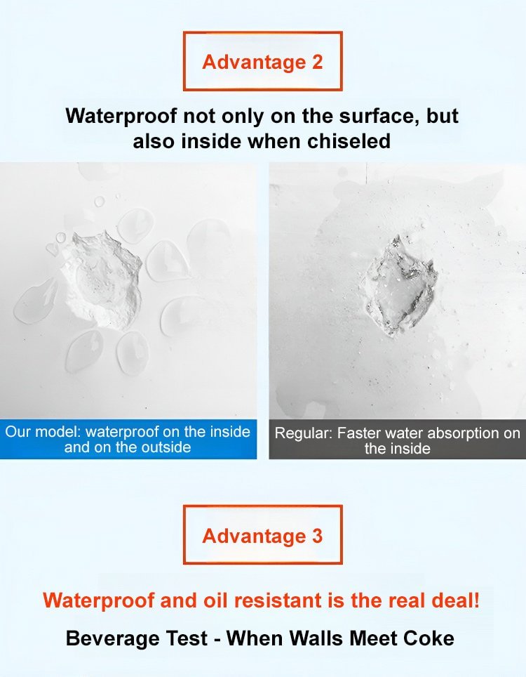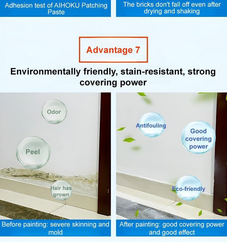 MILJÖVÄNLIG OCH FLÄCKAVSTÅENDE: Vi bryr oss om miljön, och därför är vår Waterproof Wall Repair Paste utformad för att vara miljövänlig. Den innehåller inga skadliga kemikalier eller toxiner som kan skada dig eller planeten. Dessutom är den fläckresistent, vilket gör det lättare att rengöra och underhålla den reparerade ytan.