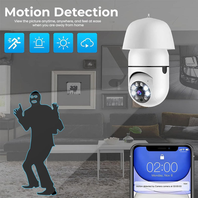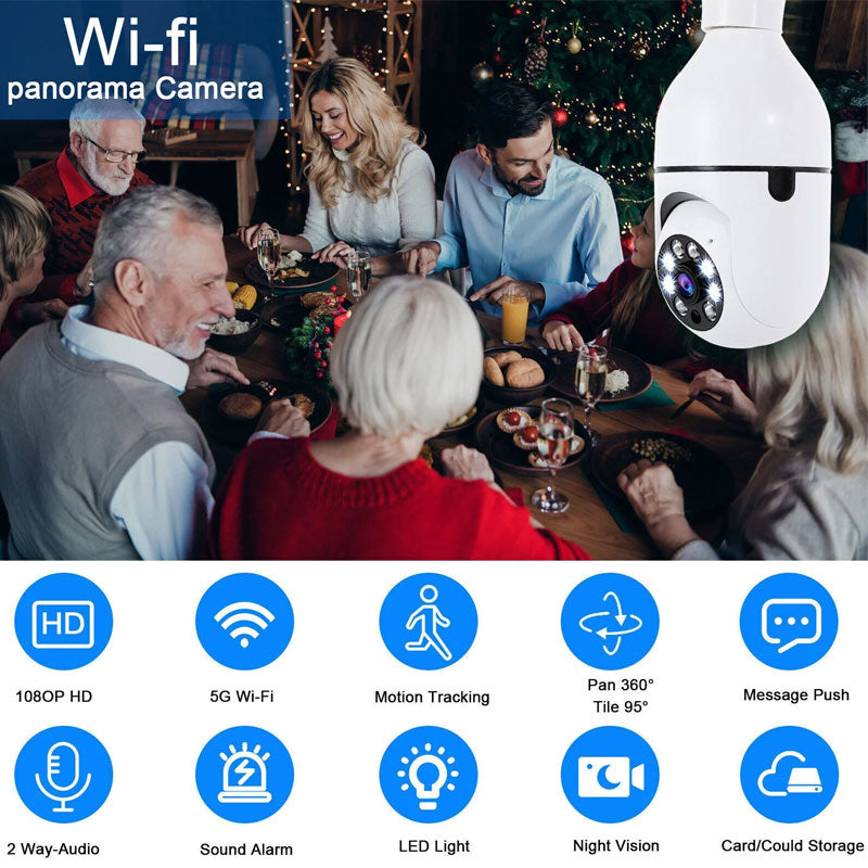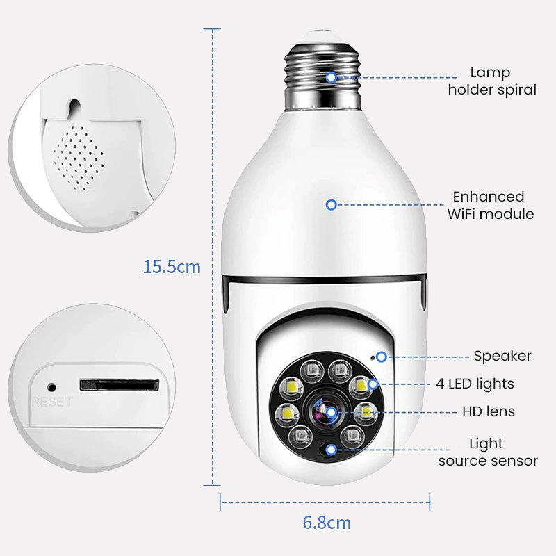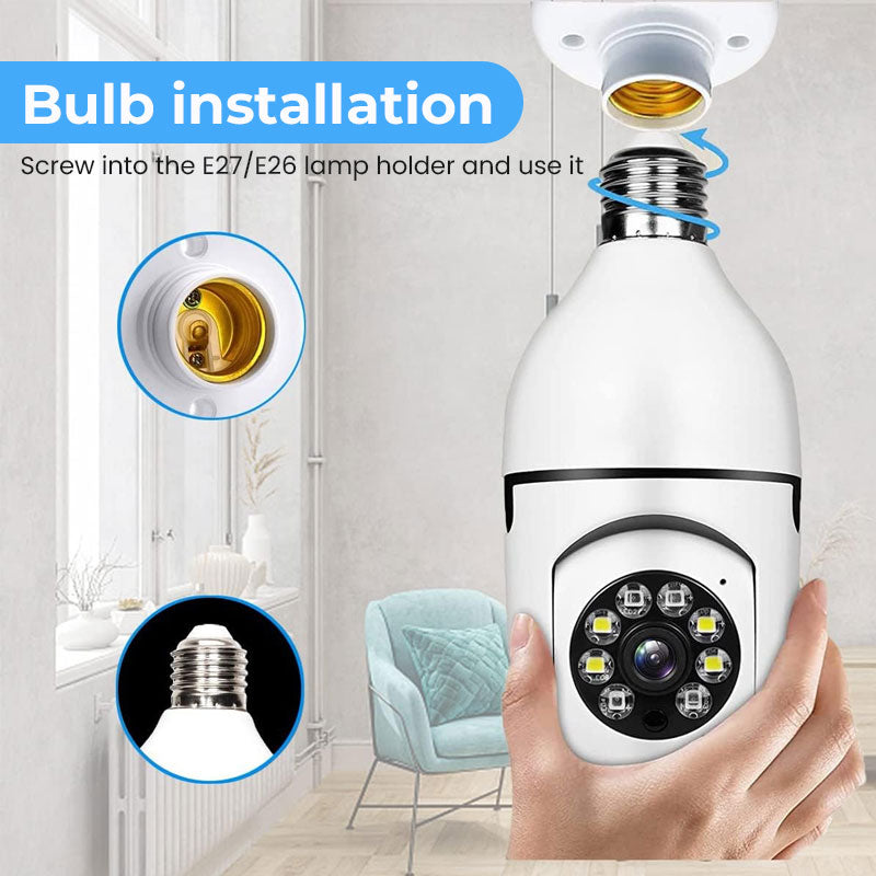 Den smarta glödlampskameran som integrerar belysning och övervakning kräver ingen tråkig installation. Den kan enkelt skruvas in i lamphållaren för användning. Stöder högupplöst mörkerseende, fjärrkontroll och tvåvägs röstintercom, vilket ger säkerhetsskydd för alla väder för ditt hem och din butik!